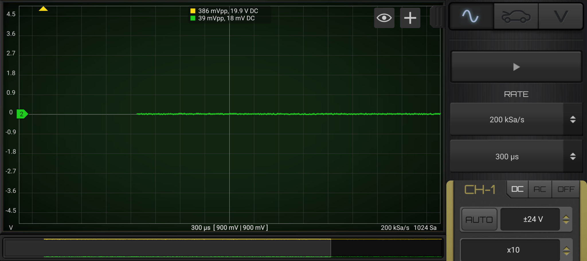 10x probe showing 20v