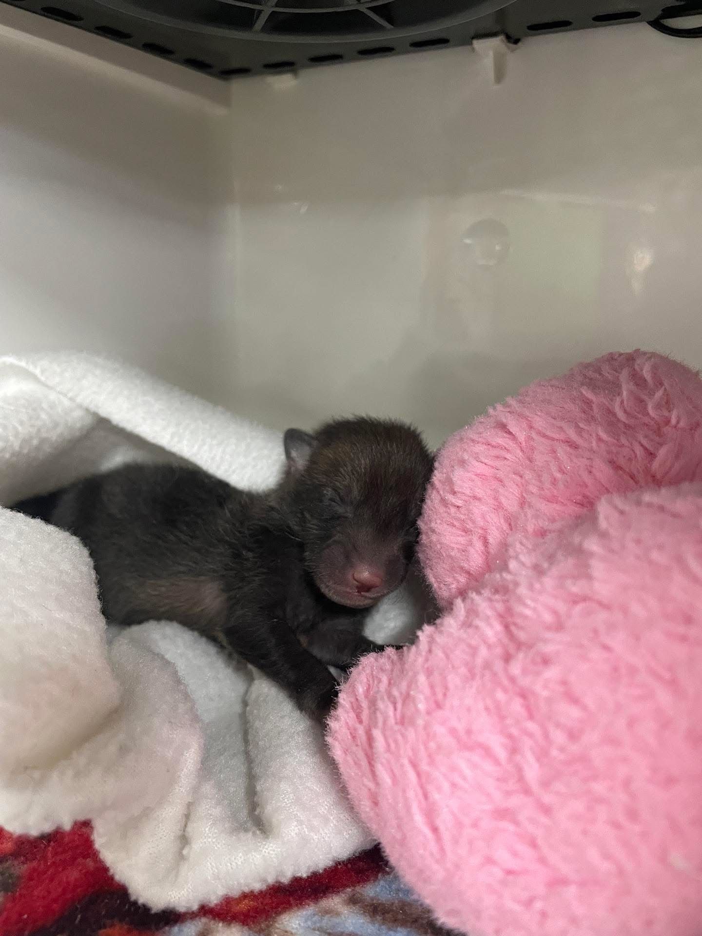 This is Rider the fox again, this time chilling in an incubator