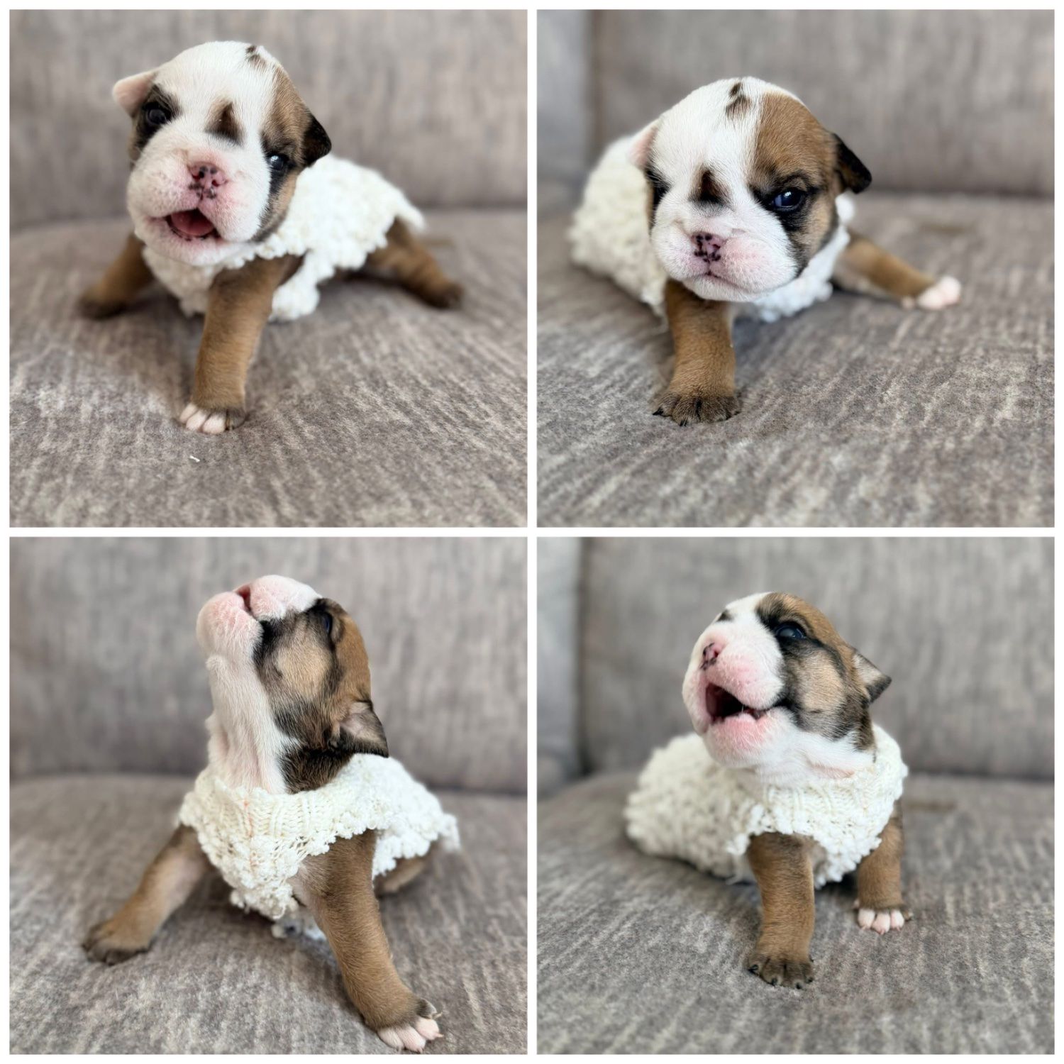 This is Pearl Jam or Peej. Pearl is an English bulldog with a cleft palate. She is almost 3 weeks old here.
