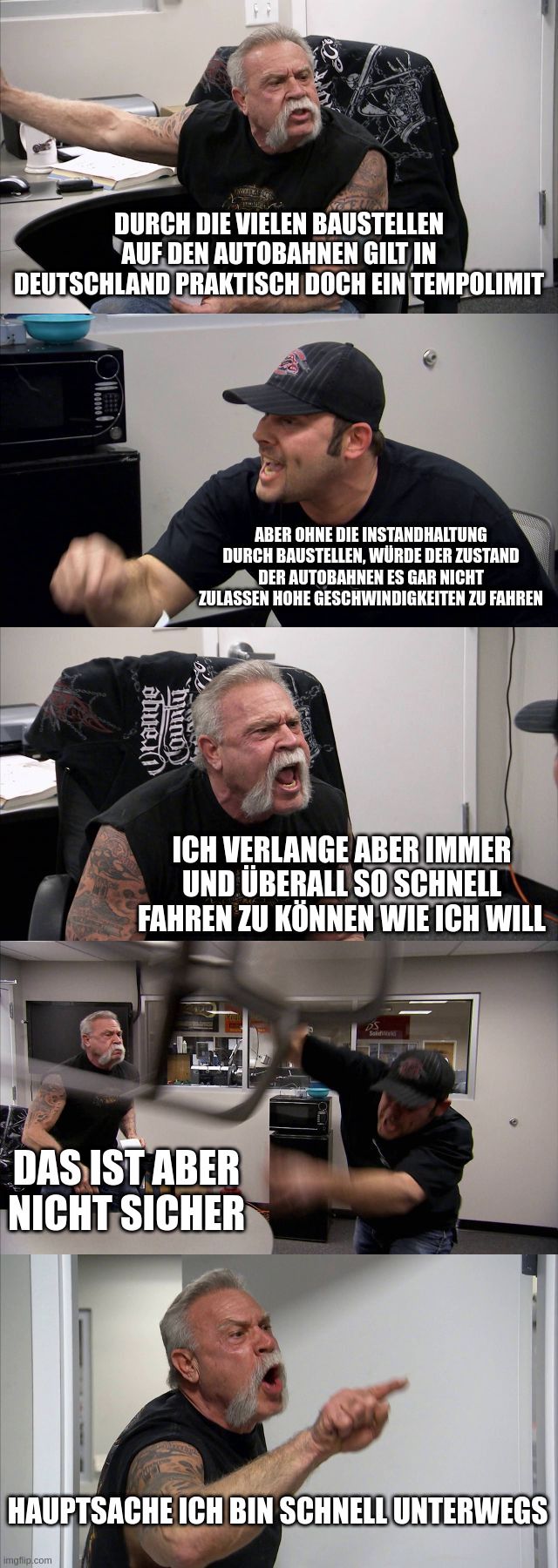 Ich war gestern wieder dabei, als sich Autofahrende über die vielen Baustellen beschwert haben. Und ich bin jedes mal aufs neue verwirrt, weil das ja eigentlich das Zeichen ist, dass in die Autobahnen in Deutschland investiert wird, und sie stattdessen nicht einfach verrotten.