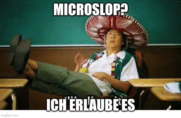 Bildbeschreibung: “I’ll allow it” meme (knowyourmeme.com/memes/senor-changs-ill-allow-it) Oben Text: Microslop? Unten Text: ich erlaube es